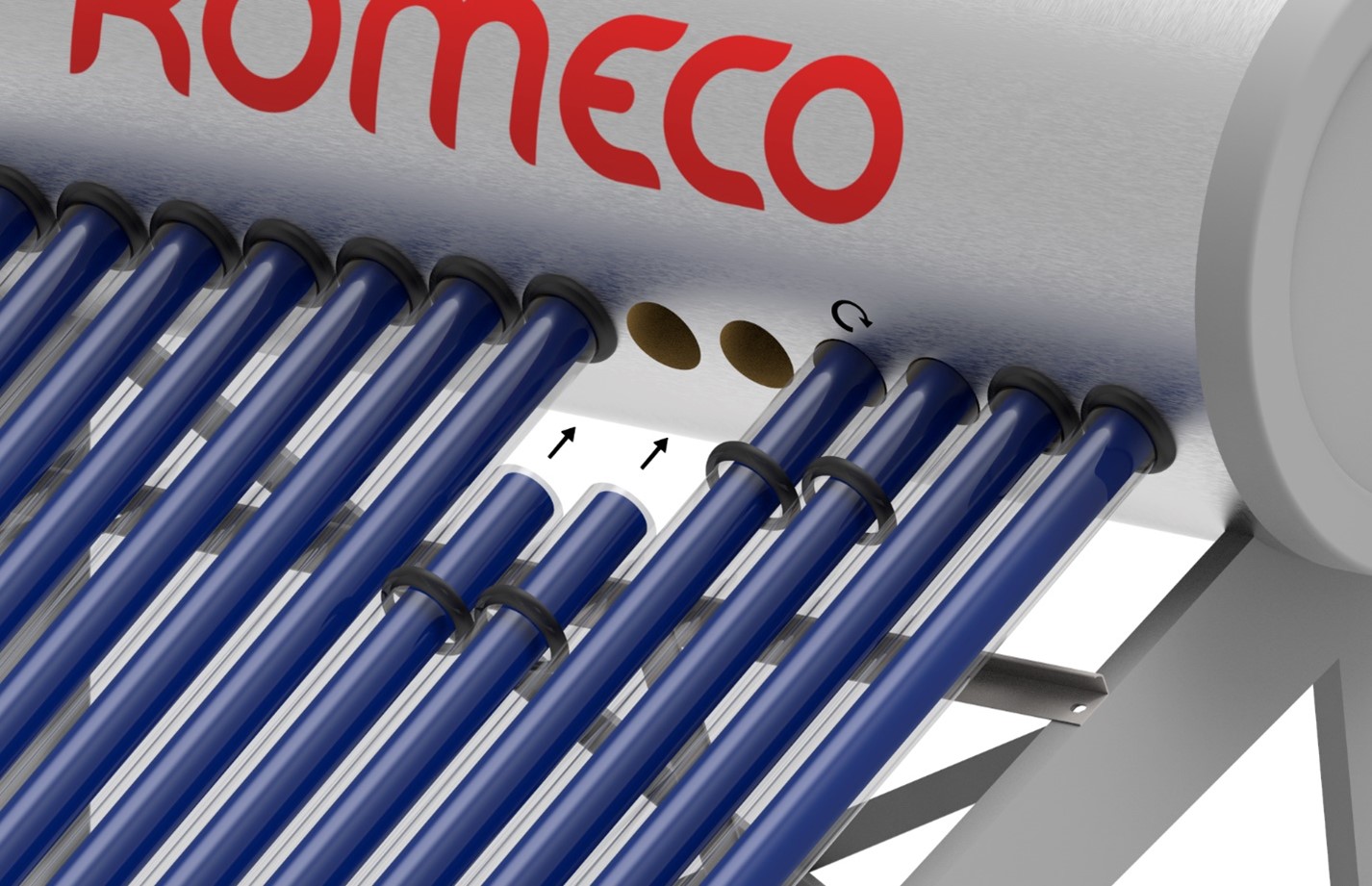 | Modelo 30 Tubos | Volume: 250L | Produção: 312,3 kWh/mês |