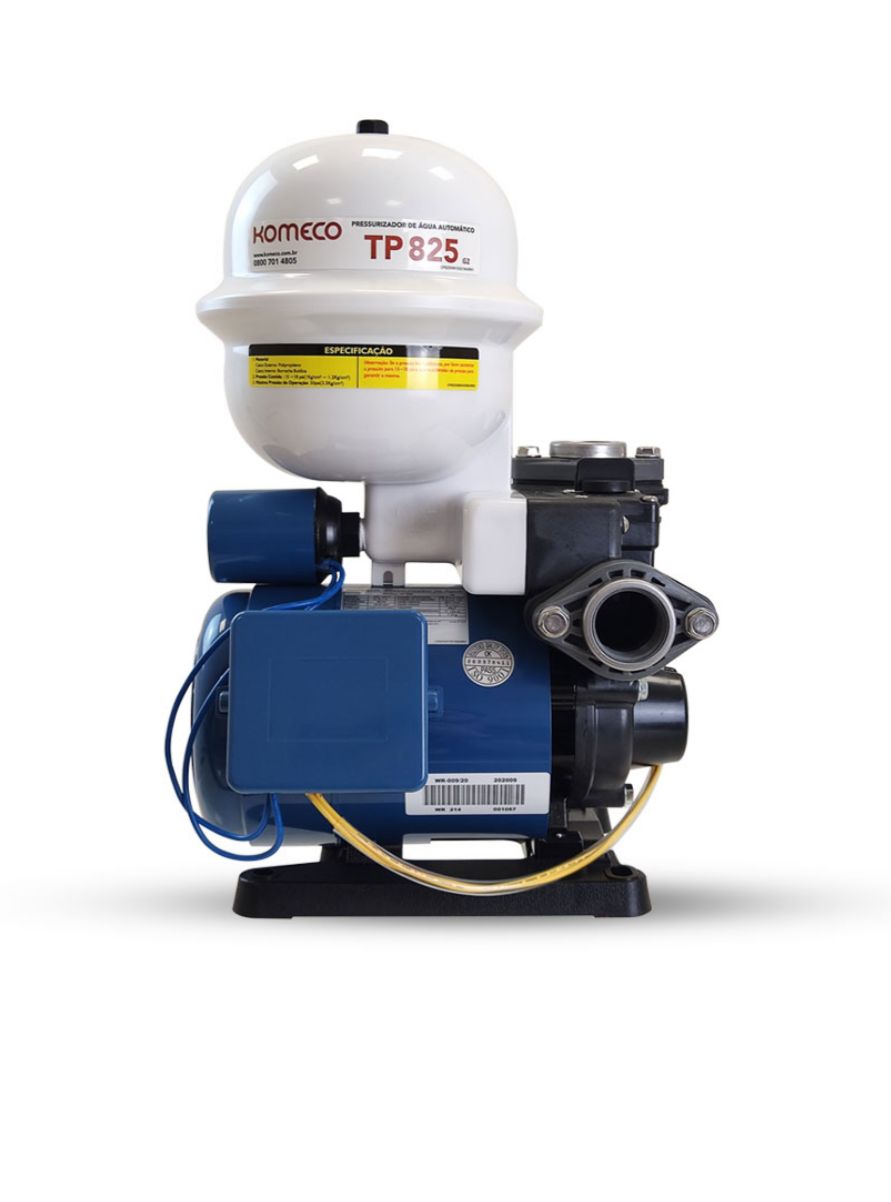 O pressurizador de água TP 820/825, da Komeco, foi desenvolvido para aumentar e estabilizar a pressão da água em sistemas hidráulicos residenciais. Proporciona mais conforto e eficiência no uso de chuveiros, torneiras e demais pontos de consumo.